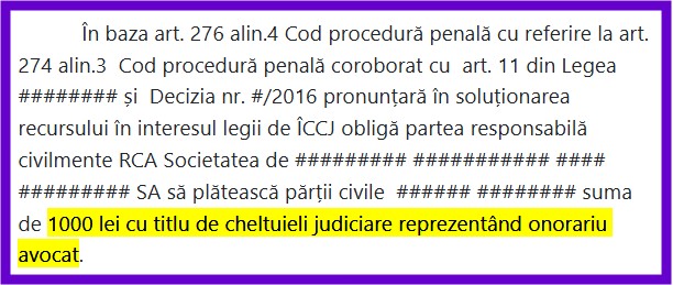 ⚠️ Notă importantă: onorariul se stabilește prin contract avocat–client și diferă de la caz la caz. În plus, onorariul de succes de multe ori nu apare în hotărâri (îl știu doar părțile și avocatul), deci ce vezi în instanță poate fi doar „partea vizibilă” a costurilor.