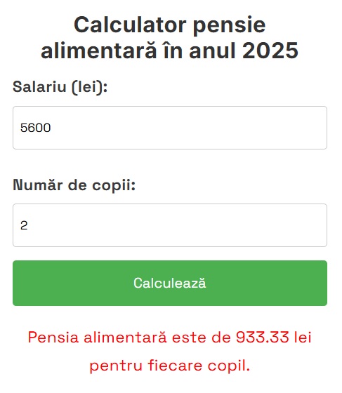 Află ce pensie alimentară trebuie să plătești folosind acest calculator pentru pensie alimentară în 2025 unde introduci: