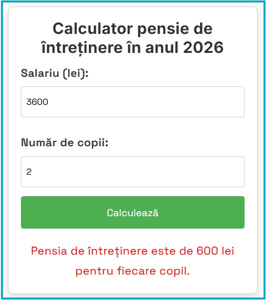 Calculator pensie de întreținere 2026